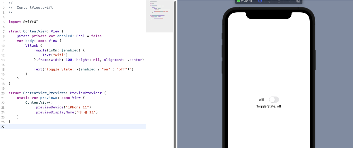 - @State 프로퍼티 wrapper를 사용하여 선언된다.
