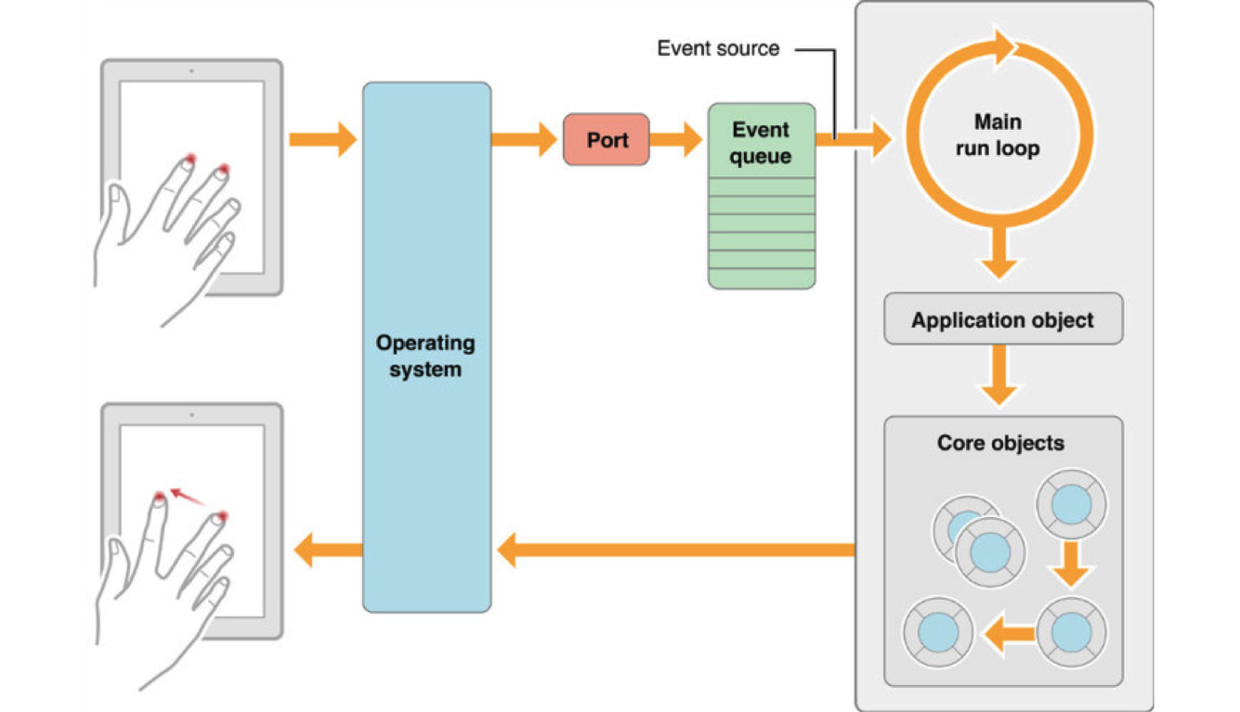 - 즉, 애플리케이션 객체 (Application Object)는 유저로부터의 input 이벤트를 해석하고, 그에 상응하는 application 의 Core object들 안에 있는 handler를 호출한다.