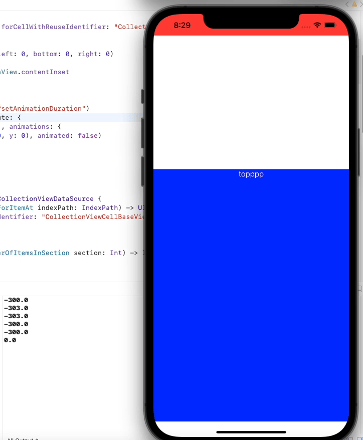 위와 같이 UIView.animate를 써서 animated 필드를 false로 두거나, 혹은 contentOffset 필드의 값을 직접 지정하면 animation duration을 조절할 수 있다.