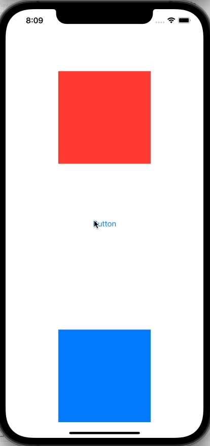 다음과 같은 상태에서 button을 클릭했을 시 redView의 상단으로 완전히 달라붙는 애니메이션을 실행하려고 한다. 근데 보다시피 코드에서 UIView.animate이전에 blueView의 constraint을 수정해서 blueView의 layout을 업데이트를 알리는 dirtyflag가 바뀌어져 있는 상황이다. 이 상황에서 애니메이션을 실행하면 아래와 같이 blueView에도 animation이 적용된다.
