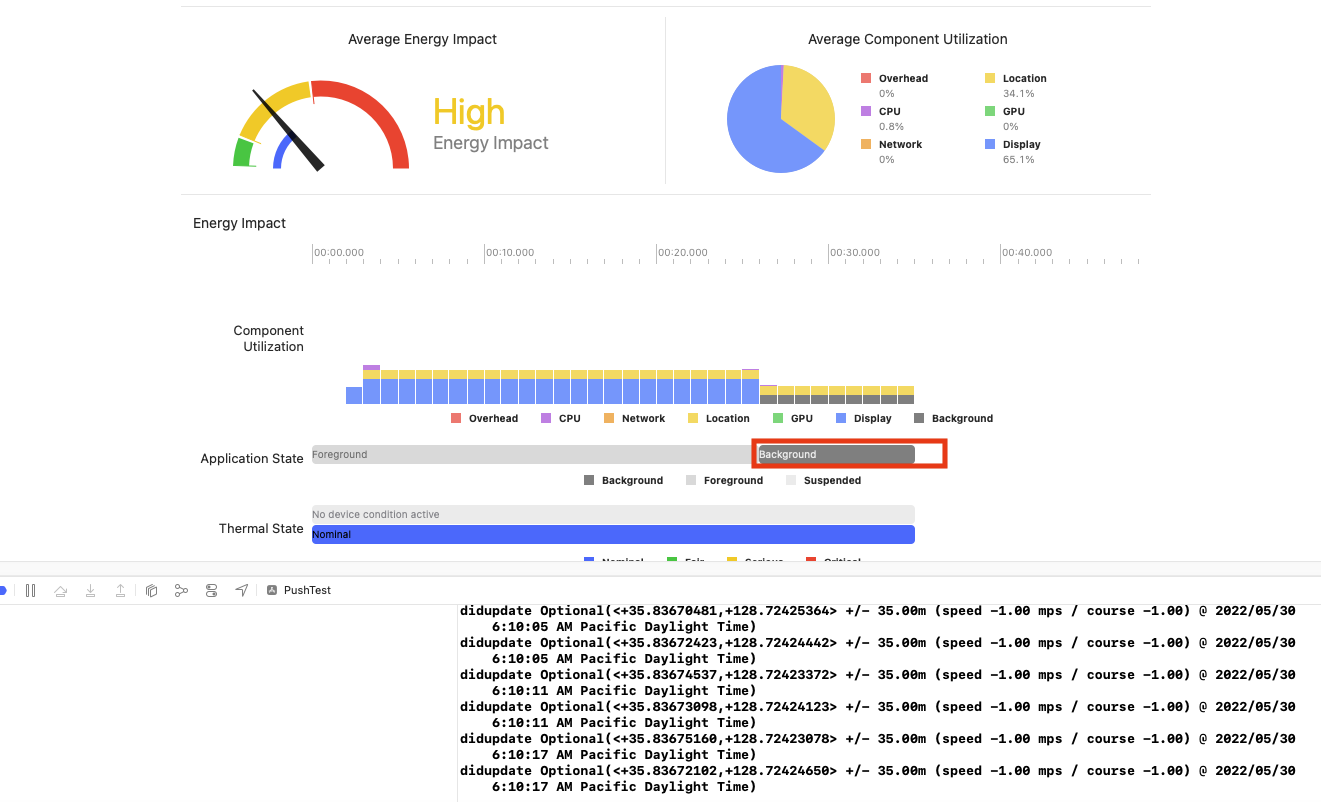 - stopUpdatingLocation() 메서드를 호출하기 전까지 앱은 Background state로 유지되고 위치 정보를 업데이트 받게 된다.